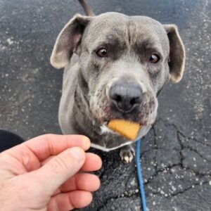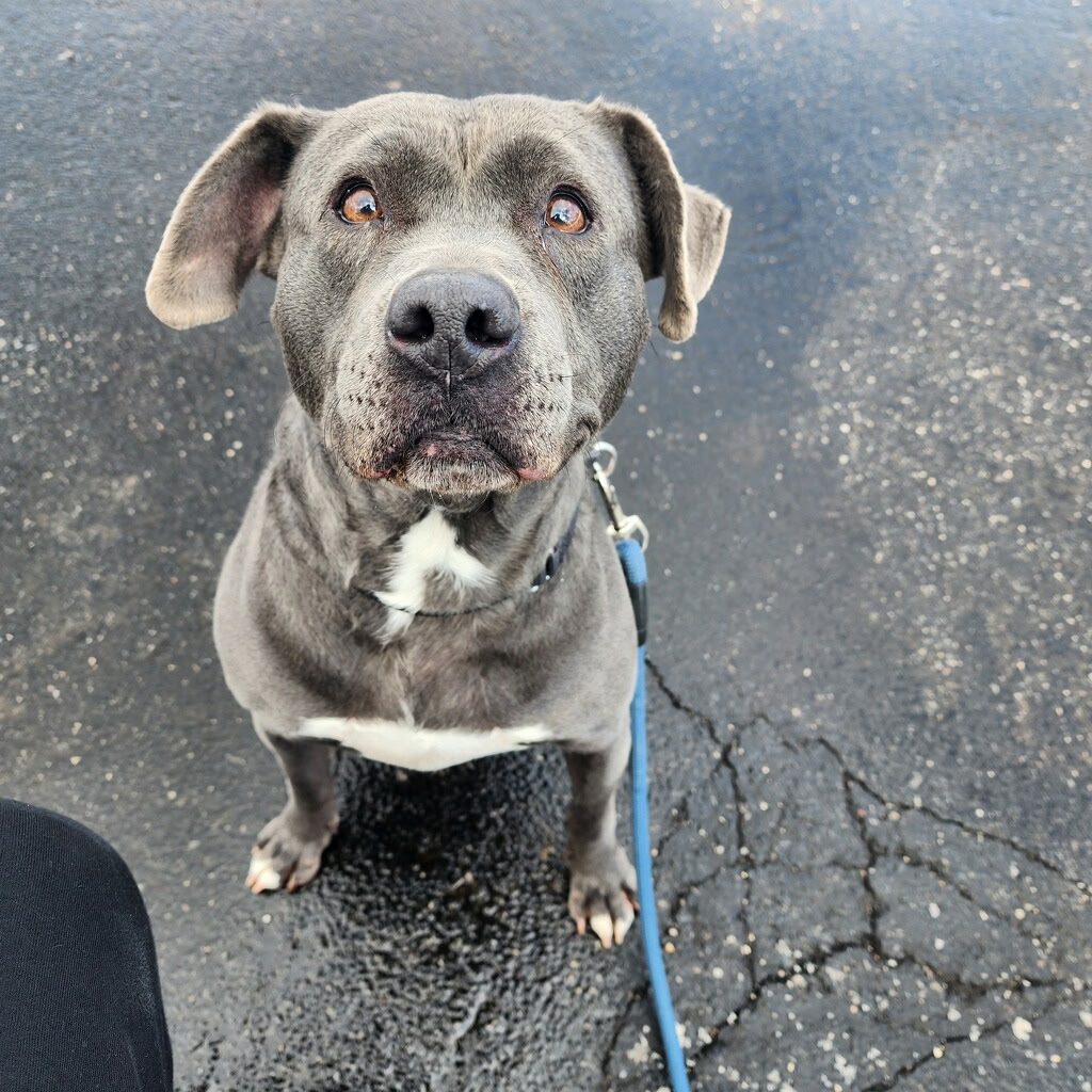 Meet Mamma: A Forgotten Girl Ready for a Fresh Start **4 Years old **FEMALE-Pittie Mix Breed* 55 POUNDS**SPAYED** UP TO DATE ON ALL Mamma has spent the last few years at a kennel after her owners disappeared. She’s been waiting—patiently, quietly—for someone to finally see her. At around 55 lbs, this gray-coated pit mix has endured more instability than any dog should, yet she still has a spark of sweetness that shines through once she feels safe. After about 15 minutes of walking, something shifts. Her body softens, her eyes brighten, and she becomes playful, sweet, and genuinely happy. She loves to run, play, and enjoy the world once her initial tension melts away. There’s a lovely dog in there—she just needs the right environment to let her come forward. Mamma needs an experienced, adult-only home with no other pets. With time to decompress from years of boarding life, consistent structure, and patient humans, she could absolutely blossom into a devoted, loving companion. Mamma has been dealt a tough hand, but she hasn’t given up. She’s waiting for someone who understands that progress takes time, that trust is earned slowly, and that some of the most rewarding bonds come from dogs who’ve had to fight a little harder for stability.